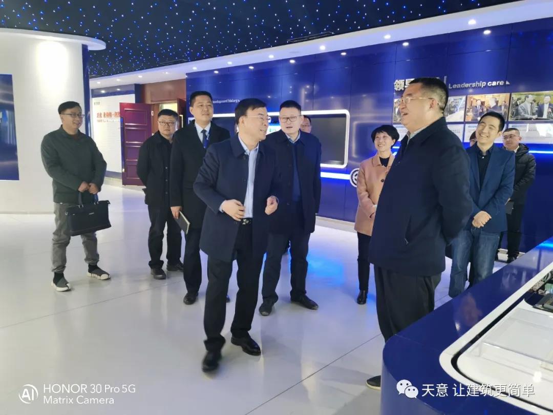 2021年2月23日, 市住建局黨組成員、副局長趙羽,市住建局節(jié)能與科技科科長孫新魯?shù)阮I導一行,在區(qū)住建局局長鄒紅, 區(qū)住建局行業(yè)發(fā)展科科長馬特等領導的陪同下,蒞臨天意座談并考察指導工作。天意機械董事長劉洪彬,總經(jīng)理劉海龍,國內(nèi)銷售部經(jīng)理秦艷慧等領導參加了座談調(diào)研,并陪同參觀了天意省級研發(fā)中心、科技體驗館、BIM技術(shù)在裝配式建筑中的創(chuàng)新應用情況等。