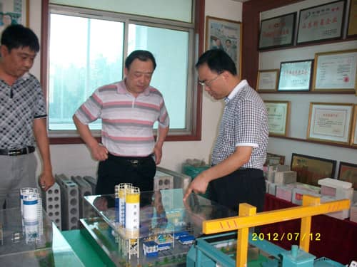 在山東天意機械制造有限公司總經(jīng)理、山東經(jīng)典集團總裁劉洪彬的陪同下,李國忠教授首先到我公司車間進行了指導工作,隨后新產(chǎn)品研發(fā)實驗室,對我們的實驗設施、實驗室整體格局提出了寶貴意見。在公司新產(chǎn)品展廳,李教授對我們新產(chǎn)品、以及以后墻體的發(fā)展趨勢做出了分析。隨后李教授和劉總經(jīng)理在公司貴賓室對公司以后的發(fā)展進行了詳細的探討與分析,為公司未來的發(fā)展奠定了堅實的基礎。
