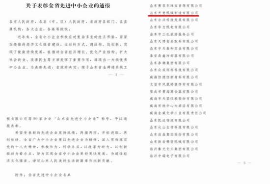 中國(guó)中小企業(yè)山東網(wǎng)公布了《關(guān)于表彰全省中小企業(yè)的通報(bào)》,山東天意機(jī)械股份有限公司被評(píng)為全省先進(jìn)中小企業(yè)!