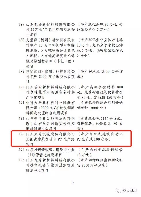 2020年2月 12日,天意機械的裝配式建筑自動化PC生產線項目入選2020年省新舊動能轉換重大項目庫第一批優(yōu)選項目。對于優(yōu)選項目省內各級政府將會進一步加大政策協(xié)調支持力度,全面落實土地、能耗、用水、環(huán)境容量、資金等“要素跟著項目走”機制,全面建立項目評審綠色通道,簡化審查審批環(huán)節(jié),在依法合規(guī)前提下加快項目手續(xù)辦理進度。天意機械的裝配式建筑自動化PC生產線項目入選省優(yōu)選項目,既體現(xiàn)了省政府對該項目的重視,也體現(xiàn)出該項目具有新舊動能轉換的先進性。